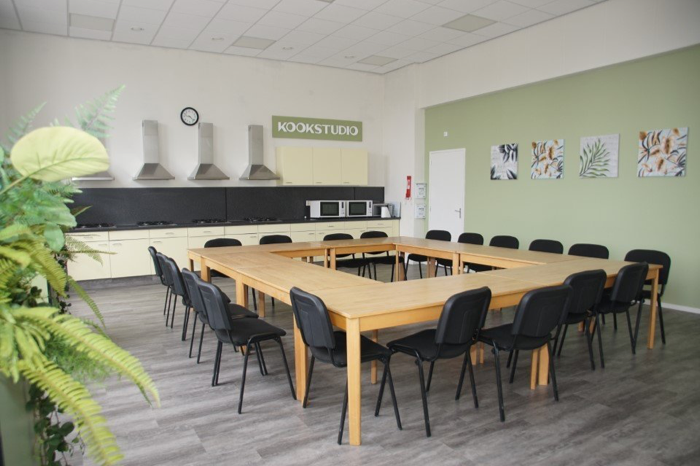 Geschikt voor diverse soorten groepen, van vergaderingen tot verjaardagen van workshops tot proeverijen. Deze ruimte is voorzien van 4 kook werk plekken voor een leuke tapasworkshop of een fijn live cooking diner.